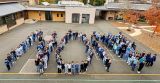 Aujourd’hui a eu lieu la journée nationale de la lutte contre le harcèlement. Nous avons mené cette action par un magnifique « NON ! » dans la cours de récréation, représenté par les élèves, vêtus de bleu.
